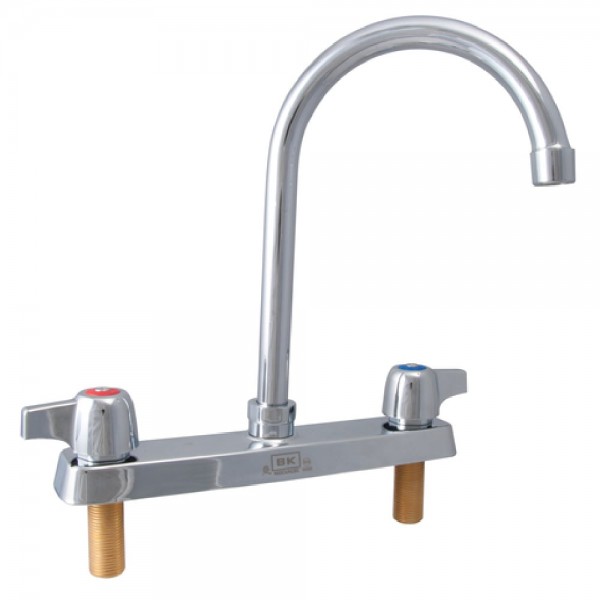 BK Resources, BK8D-5G-G, WorkForce™ Standard Duty Faucet, deck mount, 8" OC, 5" gooseneck spout, double O-ring spout seal, 1/4 turn ceramic cartridges, polished nickel chrome finish, lead free, NSF, cCSAus