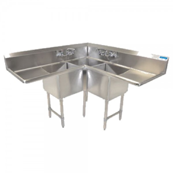 BK Resources BKCS-3-24-14-24T Corner Sink Three Compartment 75"W X 75"D X 43-1/2"H Overall Size