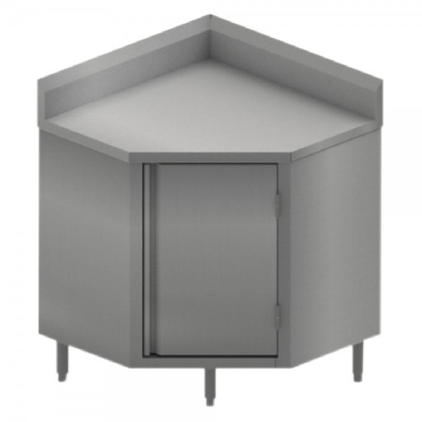 BK Resources, BKDCR5C-3030HL, Corner Work Table, 30"W x 30"D, cabinet base with hinged doors & lock, 5" riser top, 14/304 stainless steel top, 18/304 stainless steel body, (2) hinged doors, 6" stainless steel adjustable legs, NSF (3-5 day lead time)