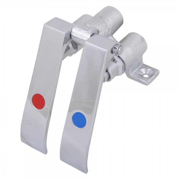 Introducing the BK Resources BKDMKV-G Dual Pedal Metering Knee Valve - the perfect addition to your hand sink setup. Built with a durable cast body and chrome plated pedals, this knee valve is designed to withstand the daily wear and tear of high traffic areas. Designed with functionality in mind, the dual pedal metering system allows for hands-free control of water flow and temperature, making it easy and convenient for users to operate.