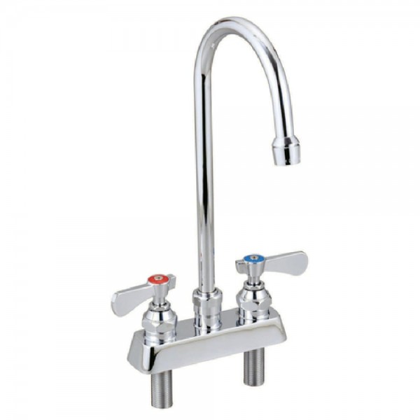 Introducing the BK Resources BKF-4DM-3G-G OptiFlow™ Heavy Duty Solid Body Faucet Deck Mount, the perfect addition to any commercial kitchen. This heavy-duty faucet is designed to withstand the toughest environments and is built to last. With a 3" gooseneck spout and double O-ring spout seal, this faucet provides optimal water flow and prevents leaks. The 1/4 turn ceramic cartridges ensure easy operation and the integral check valve prevents backflow. The high polished chrome finish is not only aesthetically pleasing but also easy to clean.