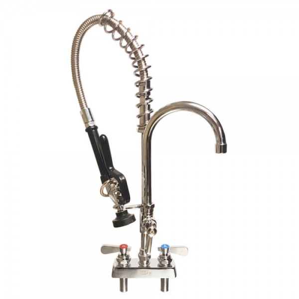 BK Resources, BKF-4DM-MINI, OptiFlow™ Mini Pre-Rinse Assembly, reduced size for small spaces, 4" OC deck mount faucet (BKF-4DM), triple-ply hose rated to 300 PSI, 1/4 turn ceramic cartridges, integral check valves, color coded hot & cold indicators, lead free