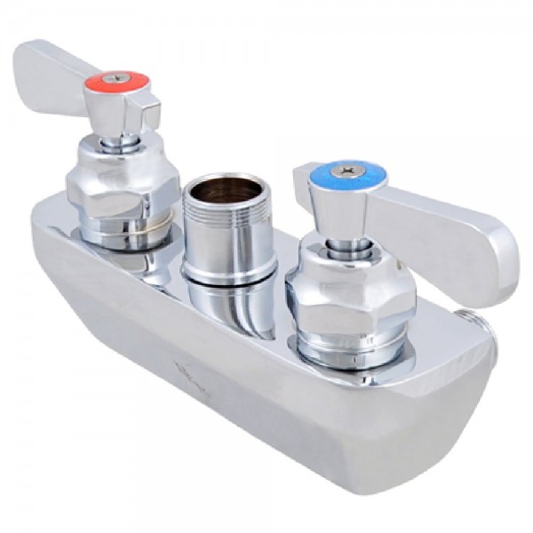BK Resources, BKF-4SM-XX-G, OptiFlow™ Heavy Duty Solid Faucet Body, splash-mounted, 4" OC, no spout, double O-ring spout seal, 1/4 turn ceramic cartridges, high polished chrome finish, lead free, NSF, cCSAus