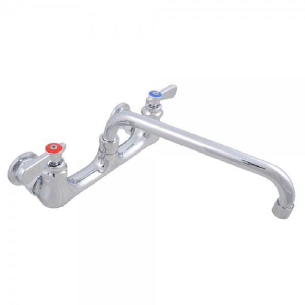Introducing the BK Resources BKF-8-G OptiFlow™ Heavy Duty Faucet, the perfect addition to any commercial kitchen! This splash-mounted faucet features an 8" swing spout, double O-ring spout seal, and 1/4 turn ceramic cartridges for optimal performance and durability. The integral check valve ensures a smooth and consistent flow of water every time. Crafted with a polished nickel chrome finish, this faucet not only looks sleek and modern but is also lead-free and NSF and cCSAus certified.