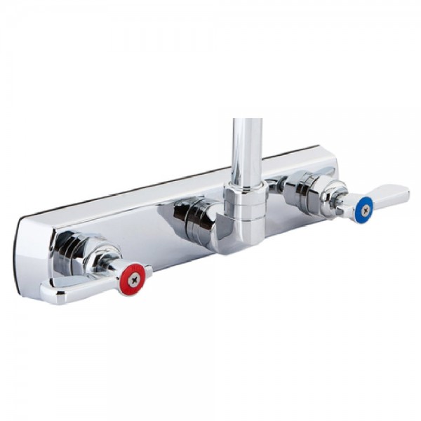BK Resources, BKF-8SM-XX-G, OptiFlow™ Heavy Duty Solid Faucet Body, splash-mounted, 8" OC, no spout, double O-ring spout seal, 1/4 turn ceramic cartridges, polished nickel chrome finish, lead free