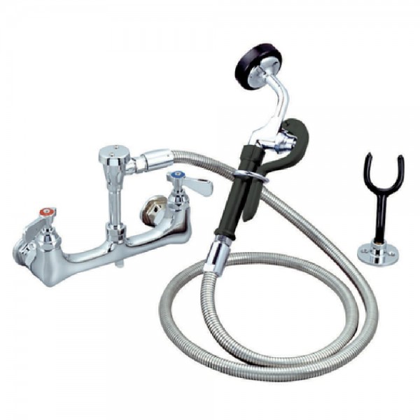 The integral check valves and vacuum breaker prevent backflow and contamination, ensuring that your water supply remains clean and safe. This faucet also features 1/4 turn ceramic cartridges, which provide smooth and easy operation. The wall hook included with the faucet makes it easy to store and keep your workspace clean and organized. Made from lead-free materials and NSF certified, the BK Resources BKF-8SMUS-G OptiFlow™ Utility Spray Faucet is both safe and reliable.