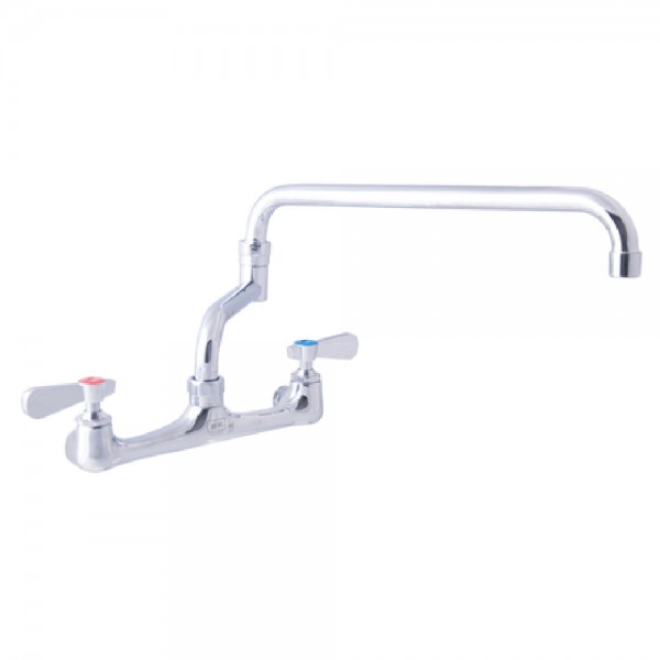 BK Resources, BKF-8W-18-G, WorkForce™ Standard Duty Faucet, splash-mounted, 8" OC, 18" double-jointed swing spout, double O-ring spout seal, 1/4 turn ceramic cartridges, stainless steel valves, polished chrome finish, lead free, NSF, cCSAus