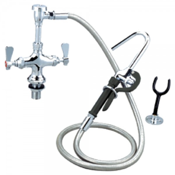 BK Resources, BKF-DDMPF-G, OptiFlow™ Pot Filler, deck mount, single hole center, 72" stainless steel braided hose, includes wall hook & hot/cold mixing hoses, high polished nickel chrome finish, lead free