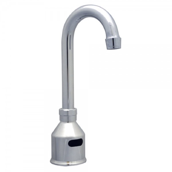 BK Resources, BKF-DEF-3G, Electronic Sensor Faucet, deck mount, single hole center, 3-1/2" gooseneck spout, adjustable temperature setting, battery or plug-in power supply