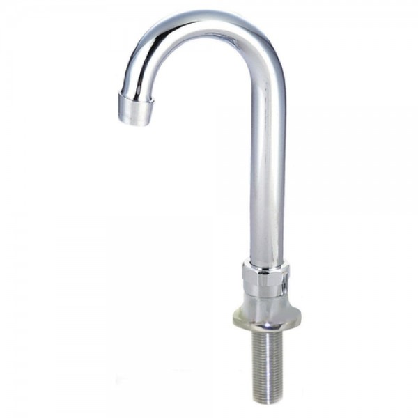 Introducing the BK Resources BKF-DMB-5G-G OptiFlow™ Faucet - the perfect addition to your kitchen or commercial space. This deck mount spout base faucet features a single hole center design and a sleek 5" gooseneck spout that adds a touch of elegance to any setting. Made with superior quality materials, this faucet is chrome plated and lead-free, ensuring long-lasting durability and safety. It has a standard 1/2" NPS thread that makes installation a breeze.