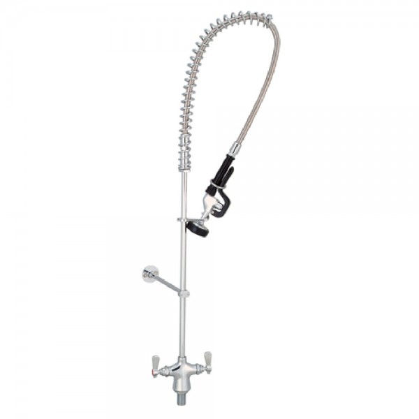 BK Resources, BKF-DMPR-WB-G, OptiFlow™ Pre-Rinse Assembly, deck mount, single hole center, triple ply hose, 12" wall bracket, 1/4 turn ceramic valves, integral check valve, 1/2" female inlets, includes hot & cold mixing hoses, lead free, NSF, cCSAus
