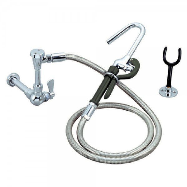 BK Resources, BKF-SSMPF-G, OptiFlow™ Single Valve Pot Filler, splash-mounted, single hole center, 72" stainless steel braided hose, vacuum breaker, includes wall hook, high polished nickel chrome finish, lead free, NSF