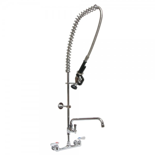 BK Resources, BKF-VSMPR-WB-AF12-G, WorkForce™ Pre-Rinse Assembly, with add-on faucet, splash-mounted, 8" OC, triple ply hose, add-on faucet with 12" swing spout, 12" wall bracket, 1/4 turn ceramic valves, 1/2" female inlets, lead free