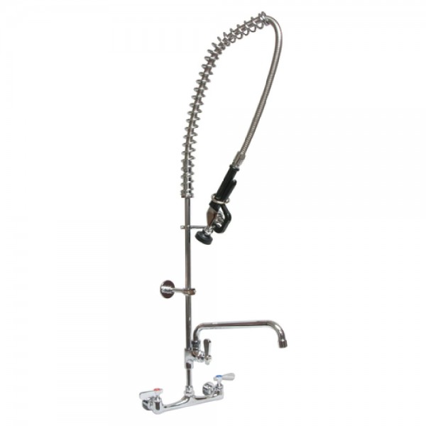 The 1/4 turn ceramic valves provide a smooth and easy operation, while the 12" wall bracket provides sturdy support for the assembly. The splash-mounted design ensures that your kitchen stays clean and hygienic at all times. This pre-rinse assembly also comes with 1/2" female inlets, making it easy to install and use. It is also lead-free, ensuring that it is safe for use in any commercial kitchen environment.
