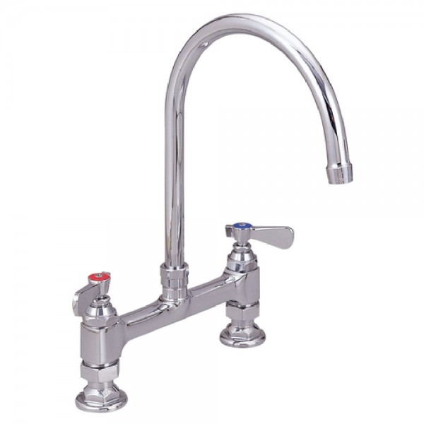 BK Resources, BKF8HD-5G-G, OptiFlow™ Heavy Duty Faucet, deck mount, 8" OC, 5" gooseneck spout, double O-ring spout seal, 1/4 turn ceramic cartridges, integral check valve, high polished chrome finish, lead free, NSF, cCSAus, ADA Compliant