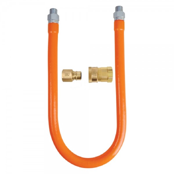 BK Resources, BKG-GHC-5024-QD-PT, Gas Hose Quick Disconnect Connection Kit, includes 24" long x 1/2" I.D. stainless steel hose with radial wrap & protective translucent coating, (1) quick disconnect, cCSAus (packaged in point-of-purchase display tube)
