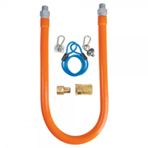 BK Resources, BKG-GHC-5048-SCK2, Gas Hose Connection Kit # 2, includes 48" long x 1/2" I.D. stainless steel hose with radial wrap & protective translucent coating, (1) quick disconnect, (1) restraining cable & hardware, cCSAus (packaged in point-of-purchase box)