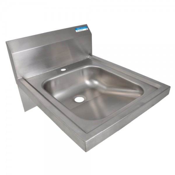 BK Resources, BKHS-ADA-D-1, Hand Sink, wall mounted, 14"W x 16"D x 5" deep bowl, 1-7/8" drain opening, (1) deck mounted faucet hole, 8" riser, 1" turn down on rear riser, marine edge, includes wall bracket, 18/304 stainless steel, ADA compliant, NSF