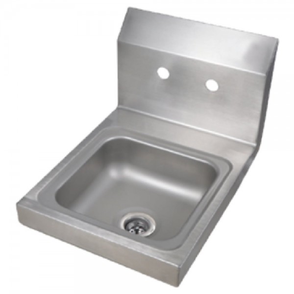 BK Resources, BKHS-W-SS, Space Saver Hand Sink, wall mount, 9" wide x 9" front-to-back x 5" deep bowl, 4" OC splash mount faucet holes, marine edge, 7-7/8"H backsplash, includes basket drain & wall mounting hardware, 304 stainless steel construction, NSF