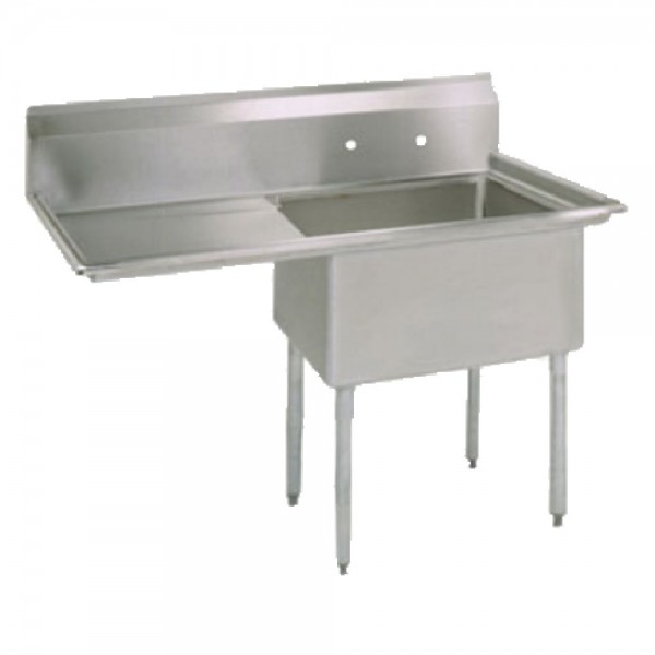 BK Resources, BKS-1-18-12-18L, Sink, one compartment, 38-1/2"W x 23-13/16"D x 43-3/4"H overall size, 18" wide x 18" front-to-back x 12" deep compartment, 18" drainboard on left, 9"H backsplash, 8" OC splash mount faucet holes, 1-1/2" rolled edges on front & sides, includes basket drain (BKDR-4), 18/304 stainless steel construction, galvanized steel legs, adjustable high impact corrosion resistant feet, NSF