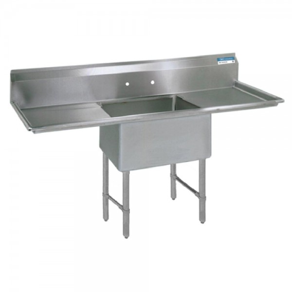 The BK Resources BKS-1-1824-14-24TS Sink comes equipped with (2) left and right 24" drainboards, making it easy to drain excess water and keep your workspace clean and dry. The sink also features a 9"H backsplash, which helps to prevent water from splashing onto your walls and floors. Constructed from high-quality 18/304 stainless steel, this sink is not only durable but also easy to clean and maintain. The sink also features stainless steel legs and side crossbracing, providing stability and support for even the heaviest loads.