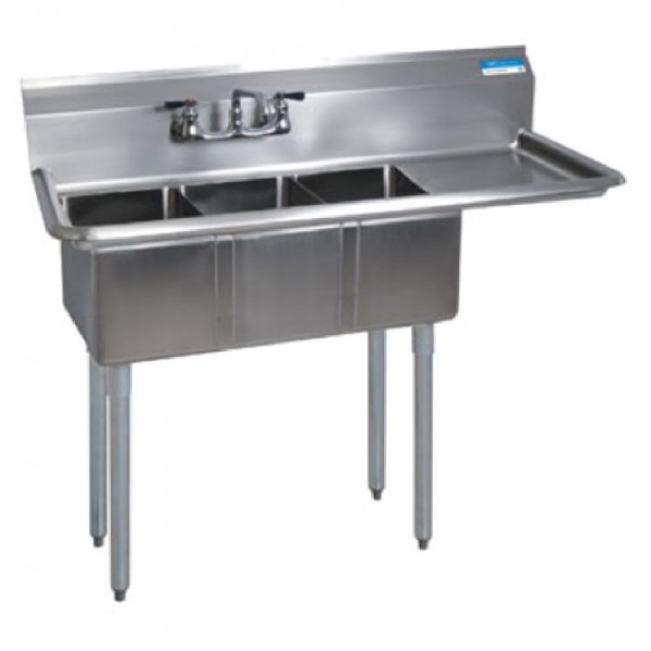 BK Resources BKS-3-1014-10-15R Convenience Store Sink Three Compartment 47-1/2"W X 19-13/16"D X 39-3/4"H Overall Size