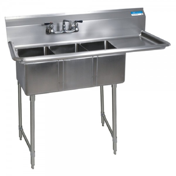 BK Resources BKS-3-1014-10-15RS Convenience Store Sink Three Compartment 47-1/2"W X 19-13/16"D X 39-3/4"H Overall Size