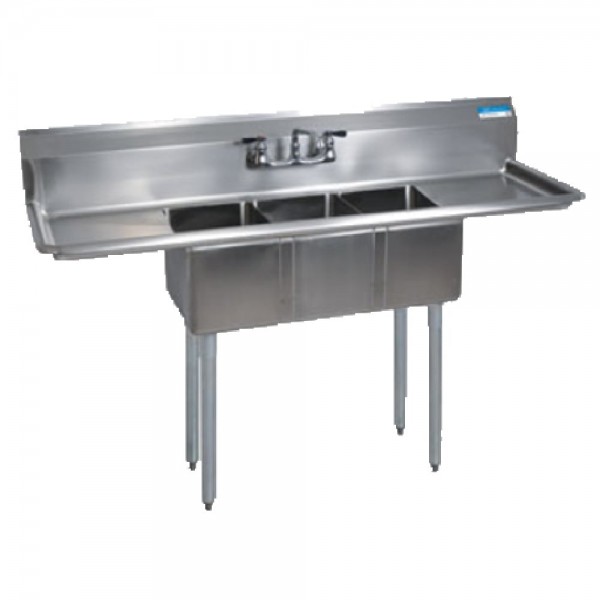 BK Resources BKS-3-1014-10-15T Convenience Store Sink Three Compartment 60"W X 19-13/16"D X 39-3/4"H Overall Size