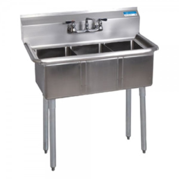 BK Resources BKS-3-1014-10 Convenience Store Sink Three Compartment 35-1/2"W X 19-13/16"D X 39-3/4"H Overall Size