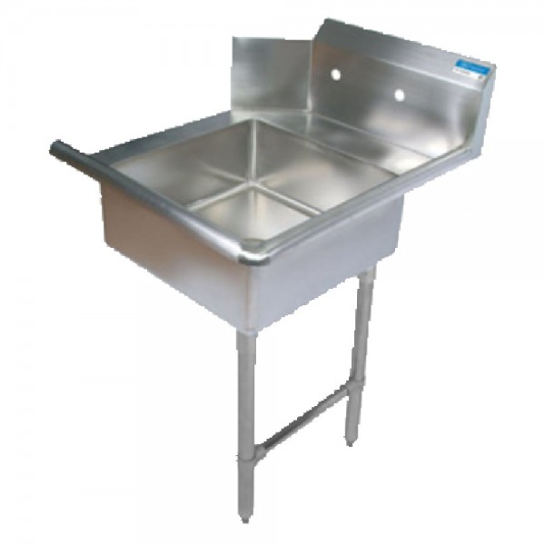 BK Resources, BKSDT-26-R-SS, Soiled Dishtable, straight design, 26"W x 30-3/8"D x 46-1/4"H, right-to-left operation, 18/304 stainless steel top, 10"H backsplash, 20" x 20" x 8" deep pre-rinse sink, 8" OC splash mount faucet holes, raised rolled edges on front & side, includes basket drain (BKDR-4), stainless steel legs & side bracing, stainless steel over plastic adjustable bullet feet, NSF