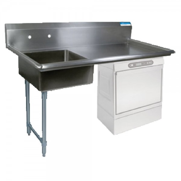 Equipped with an 20" x 20" x 8" deep pre-rinse sink, which is perfect for pre-cleaning dirty dishes, this dishtable is specifically designed to make your kitchen tasks easier and more efficient. The sink features 8" OC splash mount faucet holes, along with a 10"H backsplash and raised rolled edges on the front and sides to prevent spills and splashes. Additionally, the BKUCDT-60-L comes complete with a basket drain (BKDR-4) and galvanized legs and side bracing for added stability and durability.