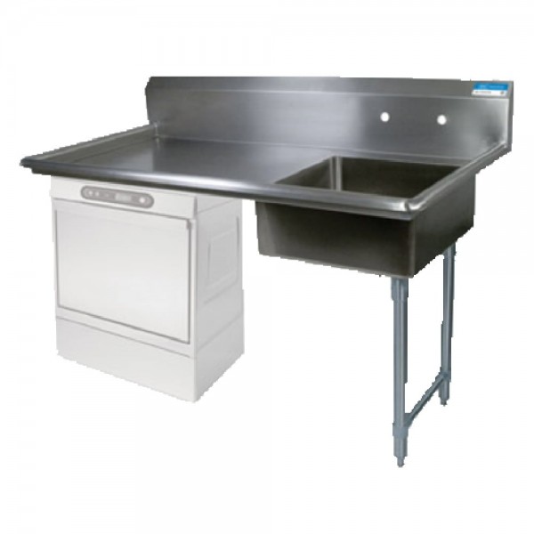 BK Resources, BKUCDT-60-R, Soiled Dishtable, undercounter, 60"W x 30"D x 46"H, right-to-left operation, 18/304 stainless steel top, 20" x 20" x 8" deep pre-rinse sink, 8" OC splash mount faucet holes, 10"H backsplash, raised rolled edges on front & sides, includes basket drain (BKDR-4), galvanized legs & side bracing, high-impact corrosion-resistant adjustable bullet feet, NSF