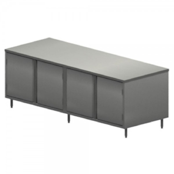 BK Resources, CST-30120H2, Dual Access Chef Table, cabinet base with hinged doors on both sides, 120" W x 30" D x 34-3/4" H, 14GA stainless steel top, 18GA stainless steel body, 6" stainless steel adjustable legs, NSF (5-7 day lead time)