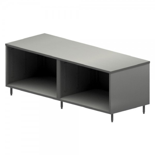 BK Resources, CST-3096, Chef Table, cabinet base with open front, 96"W x 30"D x 34-3/4"H overall size, 14/304 stainless steel top, 18/304 stainless steel body, center mullion, 6” stainless steel legs with 1" height adjustment, stainless steel feet, NSF