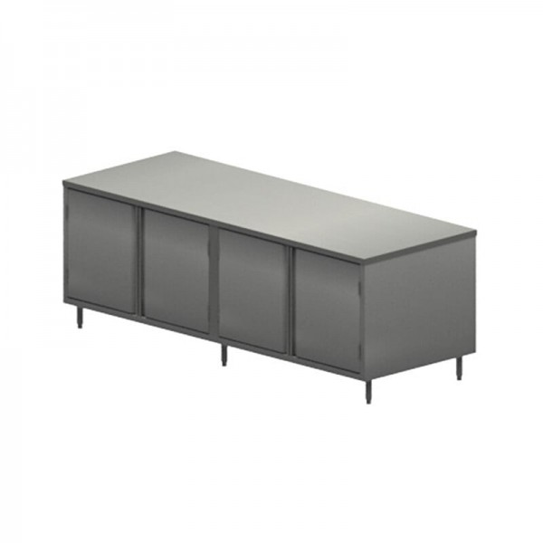 BK Resources, CST-36120H, Chef Table, cabinet base with hinged doors, 120"W x 36"D x 34-3/4"H overall size, 14/304 stainless steel top, 18/304 stainless steel body, center mullion, (2) sets of hinged doors, 6" stainless steel legs with 1" height adjustment, stainless steel feet, NSF (3-10 day lead time)