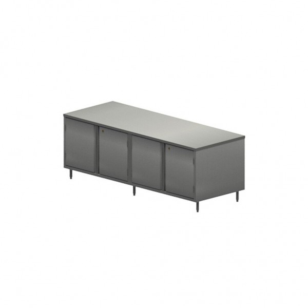 BK Resources, CST-36120HL, Chef Table, cabinet base with hinged doors & locks, 120"W x 36"D x 34-3/4"H overall size, 14/304 stainless steel top, 18/304 stainless steel body, center mullion, (2) sets of hinged doors with locks, 6" stainless steel legs with 1" height adjustment, stainless steel feet, NSF (3-10 day lead time)