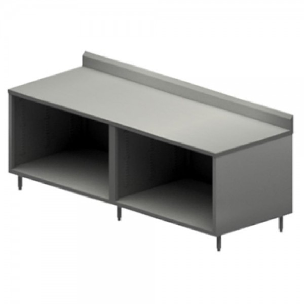 BK Resources, CSTR5-30120, Chef Table, cabinet base with open front, 120"W x 30"D x 34-3/4"H overall size, 14/304 stainless steel top with 5" back riser, 18/304 stainless steel body, (1) set of hinged doors, 6" stainless steel adjustable legs, NSF (5-7 day lead time)
