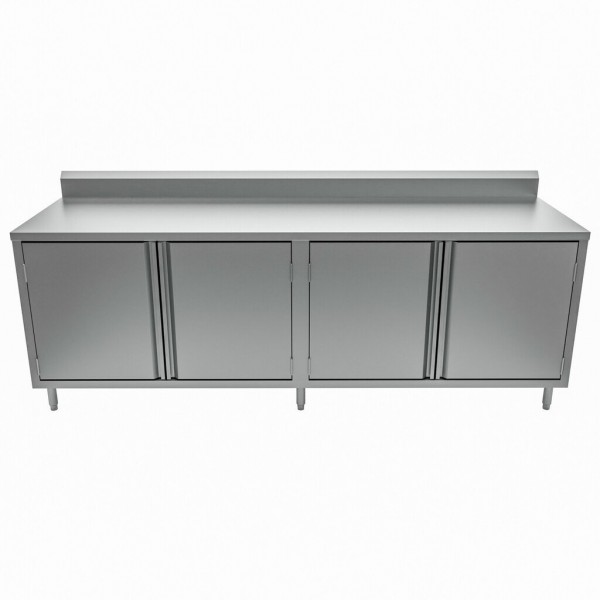 BK Resources, CSTR5-30120H, Chef Table, cabinet base with hinged doors, 120"W x 30"D x 34-3/4"H overall size, 14/304 stainless steel top with 5" back riser, 18/304 stainless steel body, (1) set of hinged doors, 6" stainless steel adjustable legs, NSF (5-7 day lead time)