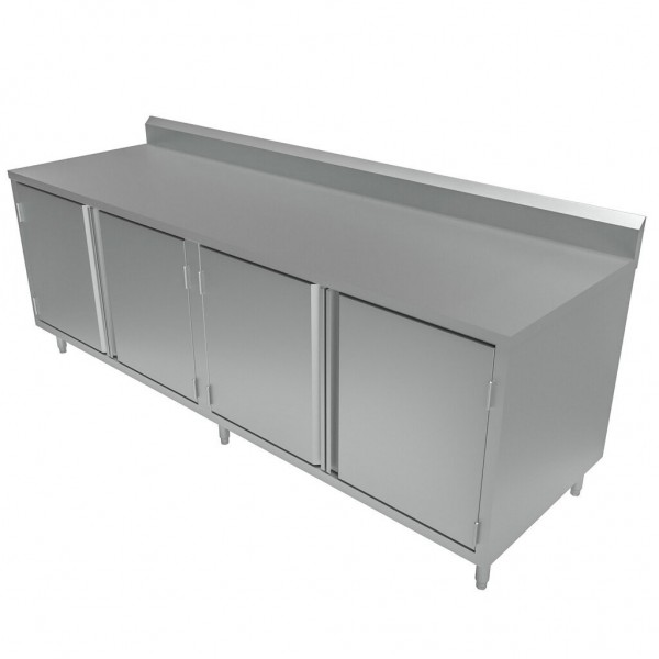 BK Resources, CSTR5-3084H, Chef Table, cabinet base with hinged doors, 84"W x 30"D x 34-3/4"H overall size, 14/304 stainless steel top with 5" back riser, 18/304 stainless steel body, (1) set of hinged doors, 6" stainless steel adjustable legs, NSF (5-7 day lead time)