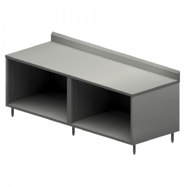 BK Resources, CSTR5-3096, Chef Table, cabinet base with open front, 96"W x 30"D x 39-3/4"H overall size, 14/304 stainless steel top with 5" back riser, 18/304 stainless steel body, center mullion, 6” stainless steel legs with 1" height adjustment, stainless steel feet, NSF
