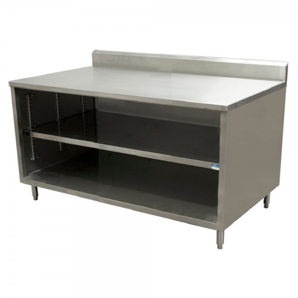 BK Resources, CSTR5-3648, Chef Table, cabinet base with open front, 48"W x 36"D x 39-3/4"H overall size, 14/304 stainless steel top with 5" back riser, 18/304 stainless steel body, 6” stainless steel legs with 1" height adjustment, stainless steel feet, NSF