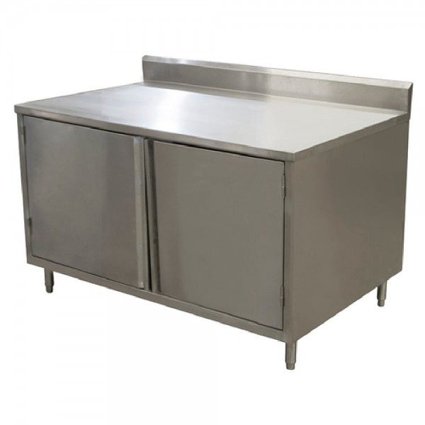 BK Resources, CSTR5-3648H, Work Table, cabinet base with hinged doors, 48"W x 36"D x 39-3/4"H overall size, 14/304 stainless steel top with 5" back riser, 18/304 stainless steel body, (1) set of hinged doors, 6" stainless steel adjustable legs, NSF (3-10 day lead time)