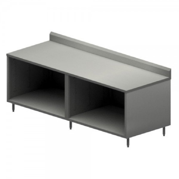 BK Resources, CSTR5-3696, Chef Table, cabinet base with open front, 96"W x 36"D x 39-3/4"H overall size, 14/304 stainless steel top with 5" back riser, 18/304 stainless steel body, center mullion, 6” stainless steel legs with 1" height adjustment, stainless steel feet, NSF