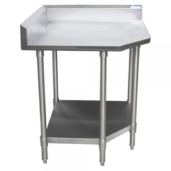 The adjustable stainless steel undershelf offers additional storage space, allowing you to keep your kitchen organized and clutter-free. The BK Resources CVTCR5-3030 Corner Work Table also features (5) stainless steel legs and adjustable stainless steel feet, ensuring that the table stays level and secure. NSF certified, this work table meets the highest standards of quality and safety. Investing in the BK Resources CVTCR5-3030 Corner Work Table means investing in a durable, reliable, and high-quality workspace solution.