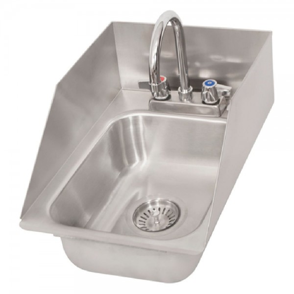 BK Resources, DDI-1014524S-P-G, Deep Drawn Drop-In Sink, one compartment, 12-5/8"W x 18-1/2"D x 10-1/2"H overall size, (1) 10" wide x 14" front-to-back x 5" deep compartment, includes deck mount faucet (BKD-5G-G), 6"H splashes on sides & rear, includes basket drain (BKDR-4), 18/304 stainless steel construction, lead free, NSF