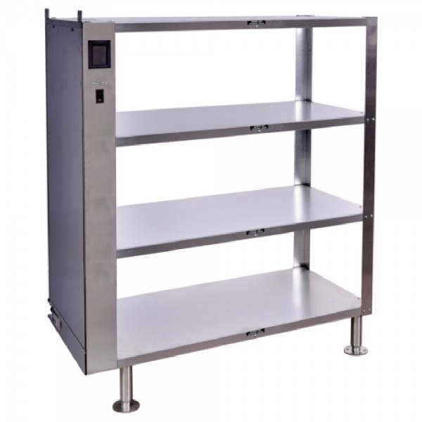 BK Resources, EHTG-4, Heated Shelf, (4) shelves, 43" W x 20" D x 50" H, electric, single thermostatic digital controller with master switch, 3-minute timer each shelf, adjustable floor flanges, marine edge, 80-200⁰F temperature range, 1406 W, 120 volts, 11.7 amps, NEMA 5-15P