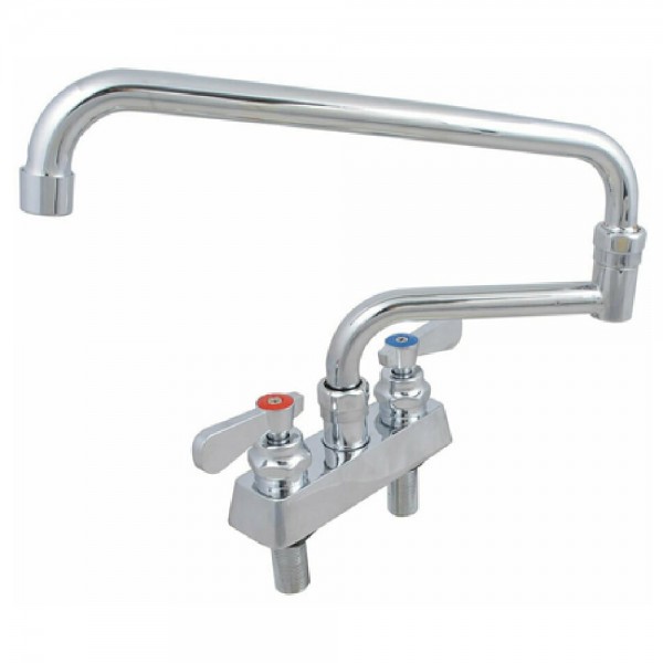 Introducing the BK Resources EVO-4DM-18 Evolution Faucet, the perfect addition to any commercial kitchen. This deck mount faucet is designed with a 4" center and an impressive 18" double joint swing spout, giving you the flexibility and convenience you need to tackle any task with ease. The quarter turn ceramic cartridges provide a smooth and reliable operation, while the integral check valve ensures that your water flow remains consistent and efficient.