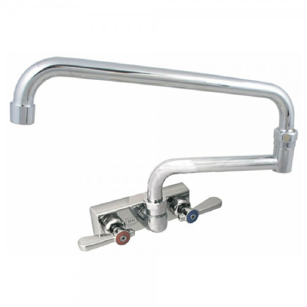 BK Resources, EVO-4SM-18, Evolution Faucet, splash-mounted, 4" centers, 18" double joint swing spout, quarter turn ceramic cartridges, integral check valve, T-304 cast stainless steel, chrome plated metal cover, lead free, NSF, cCSAus