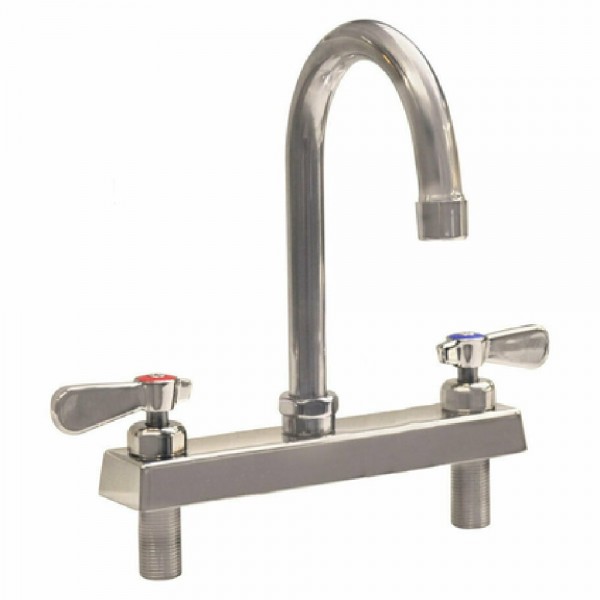 BK Resources, EVO-8DM-4G, Evolution Faucet, deck mount, 8" centers, 4-1/2" gooseneck spout, quarter turn ceramic cartridges, integral check valve, T-304 cast stainless steel, stainless steel cover, lead free, NSF, cCSAus