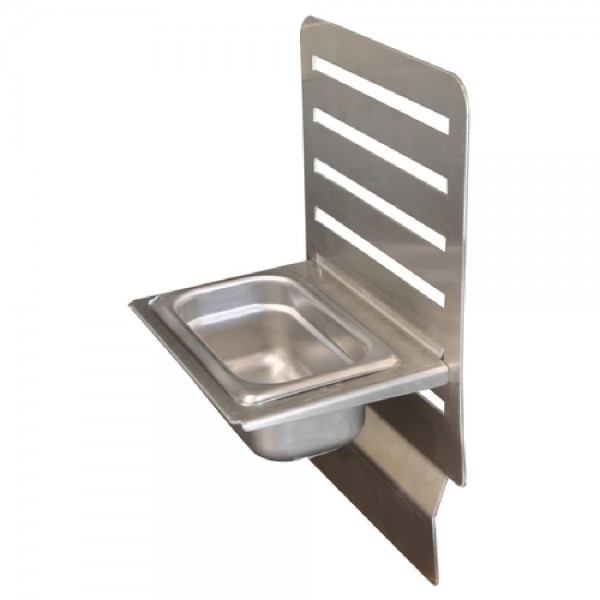 BK Resources, GCP-1-9P, GrillCook Pro Upright Shelf Stand & 1/9 Pan Holder, small, 8-1/2" wide, universal, stainless steel, fits on grill/griddle splashes or equipment stand risers